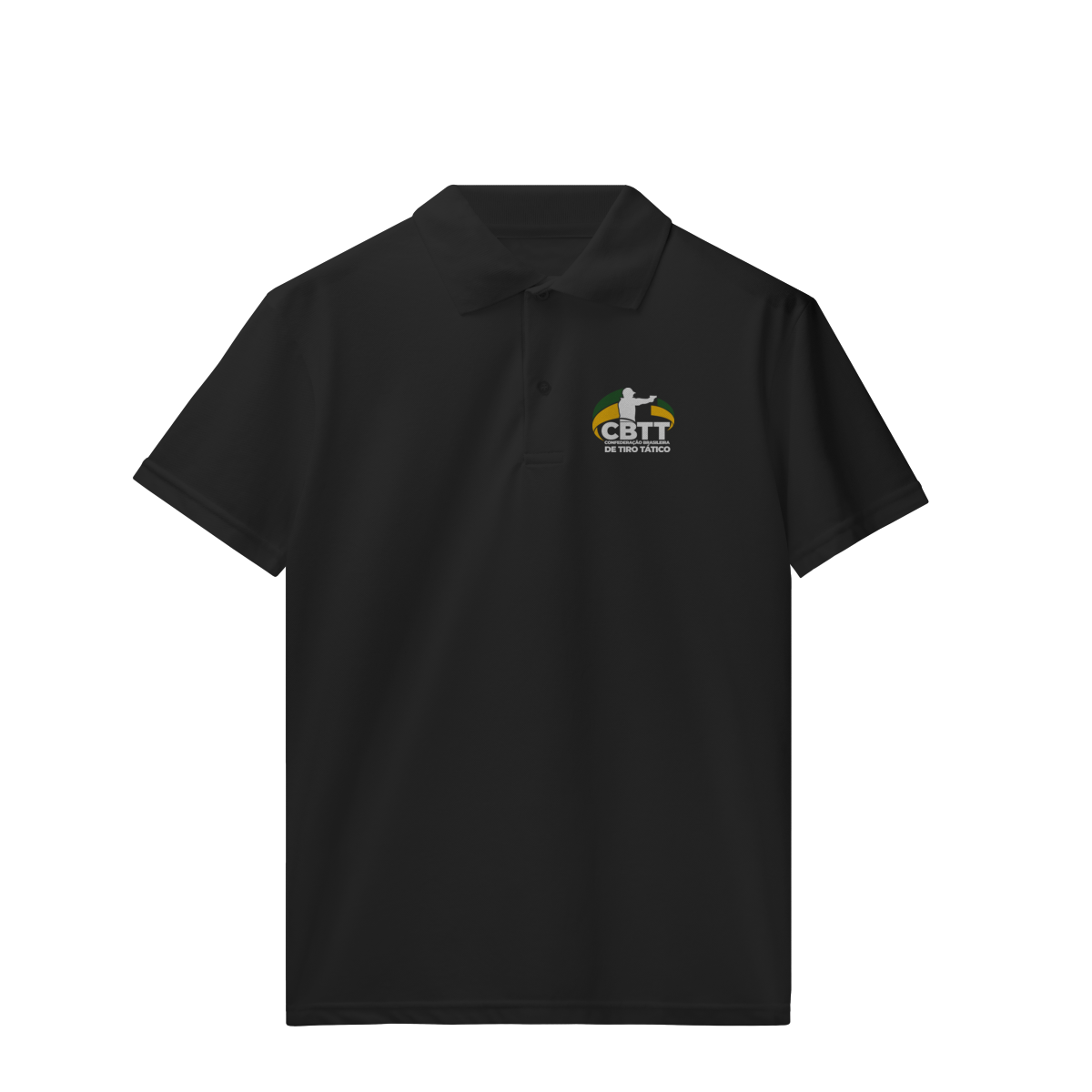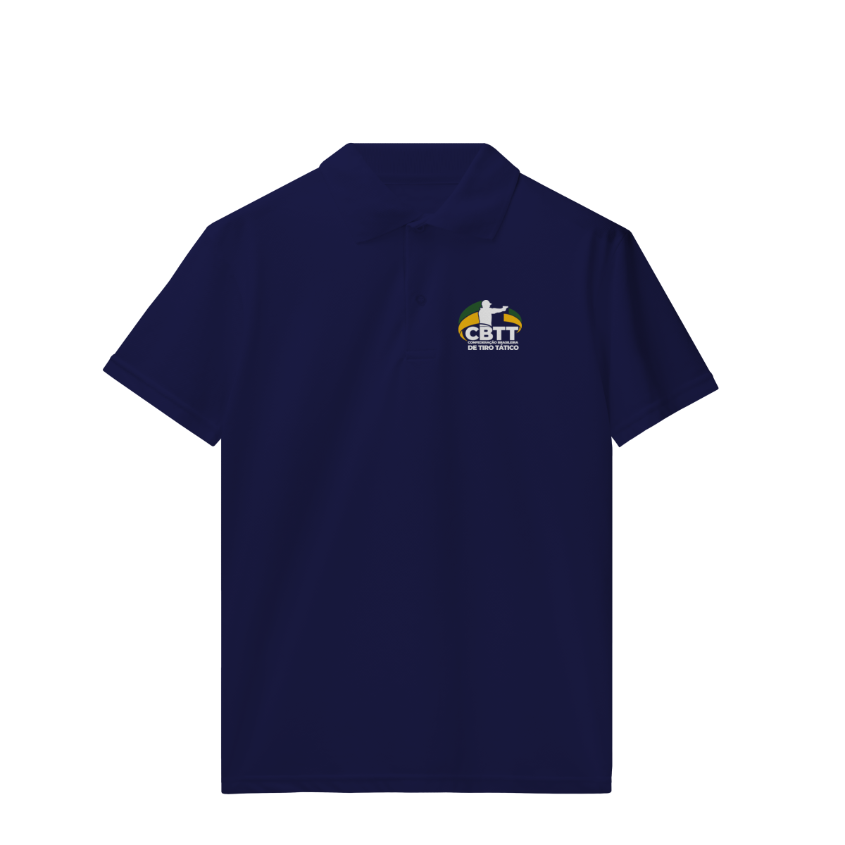 Composição: 50% de algodão e 50% de poliéster, malha piquet, costura dupla, gola em retilínea.